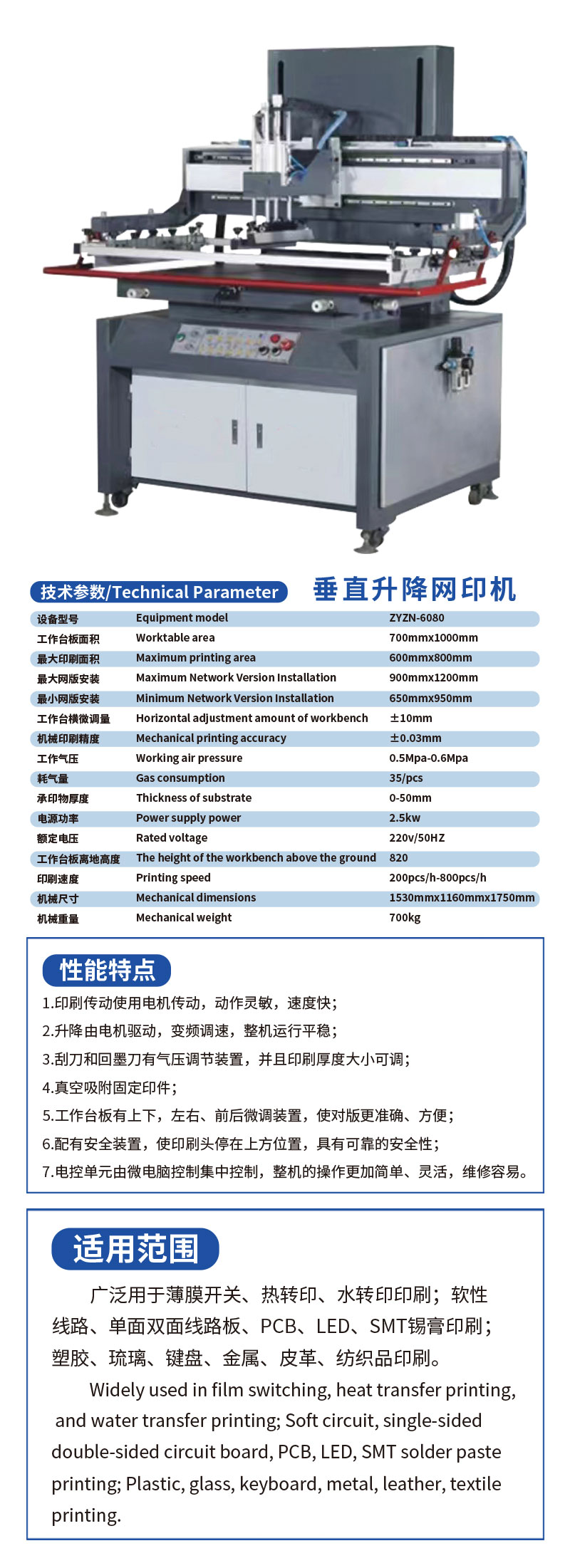 垂直升降网印机ZYZN-6080 上一篇« UV紫外线光固机ZYZN-750 下一篇垂直升降网印机ZYZN-4060 » 您可能喜欢 斜臂式平面网印机ZYZN-7010 自动取料机械手ZYZN-1800 刮刀研磨机ZYZN-900 垂直升降网印机ZYZN-6080 斜臂式平面网印机ZYZN-6090 UV全自动伺服跳步冷烫机单元组ZYZN-960 刮刀研磨机ZYZN-1200 自动撒金葱粉机 网版烘烤箱ZYZN-90120