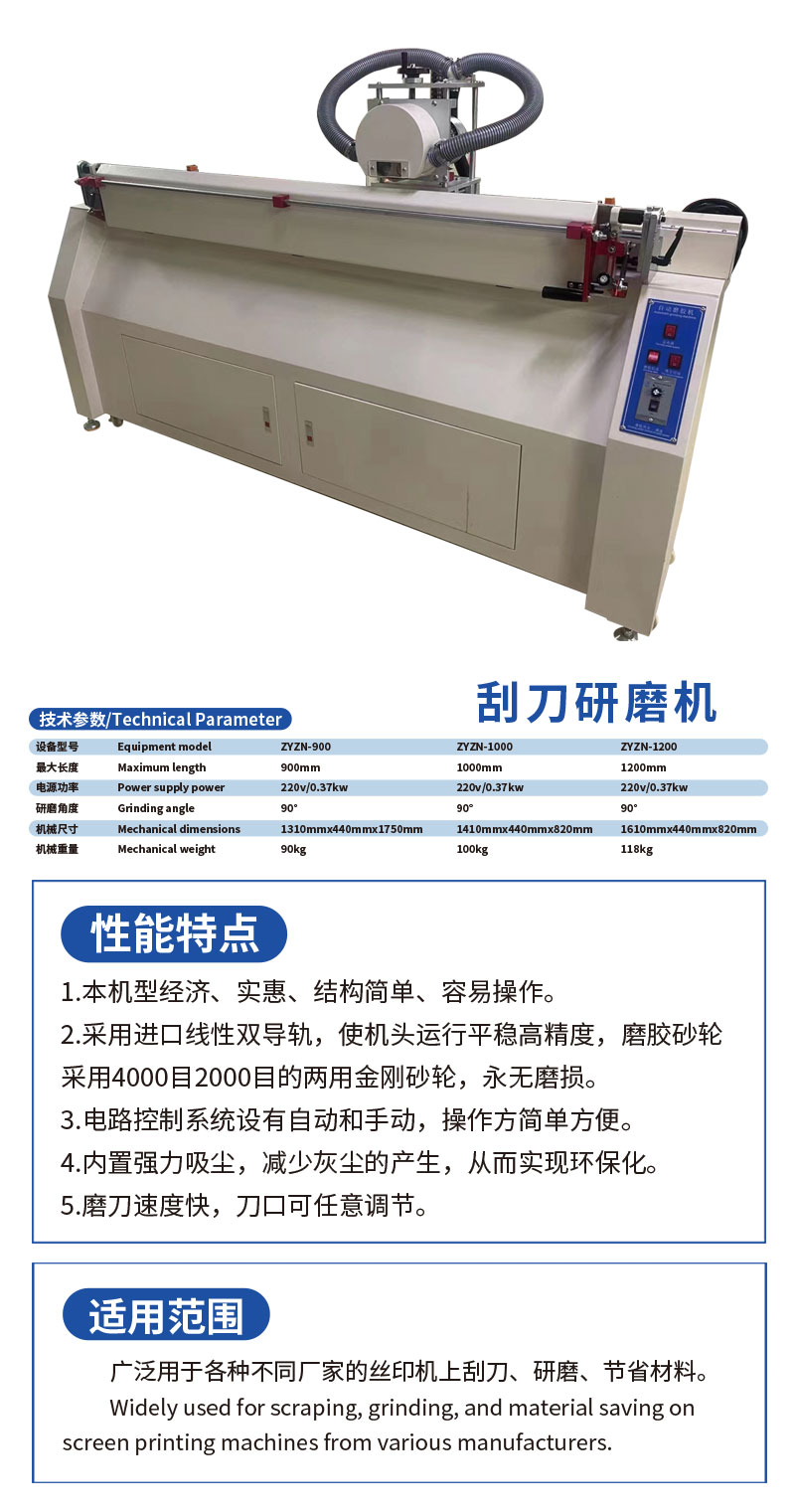 刮刀研磨机ZYZN-1200 上一篇 下一篇刮刀研磨机ZYZN-1000 » 您可能喜欢 UV全自动伺服跳步冷烫机单元组ZYZN-1160 UV04胶印紫外线光固机ZYZN-740 UV04胶印紫外线光固机ZYZN-680 高精密晒版机ZYZN-90120 网版烘烤箱ZYZN-12150 远红外线温控烘道ZYZN-900 刮刀研磨机ZYZN-1000 UV手摆离线半自动丝印冷烫机ZYZN-960 自动取料机械手ZYZN-1800