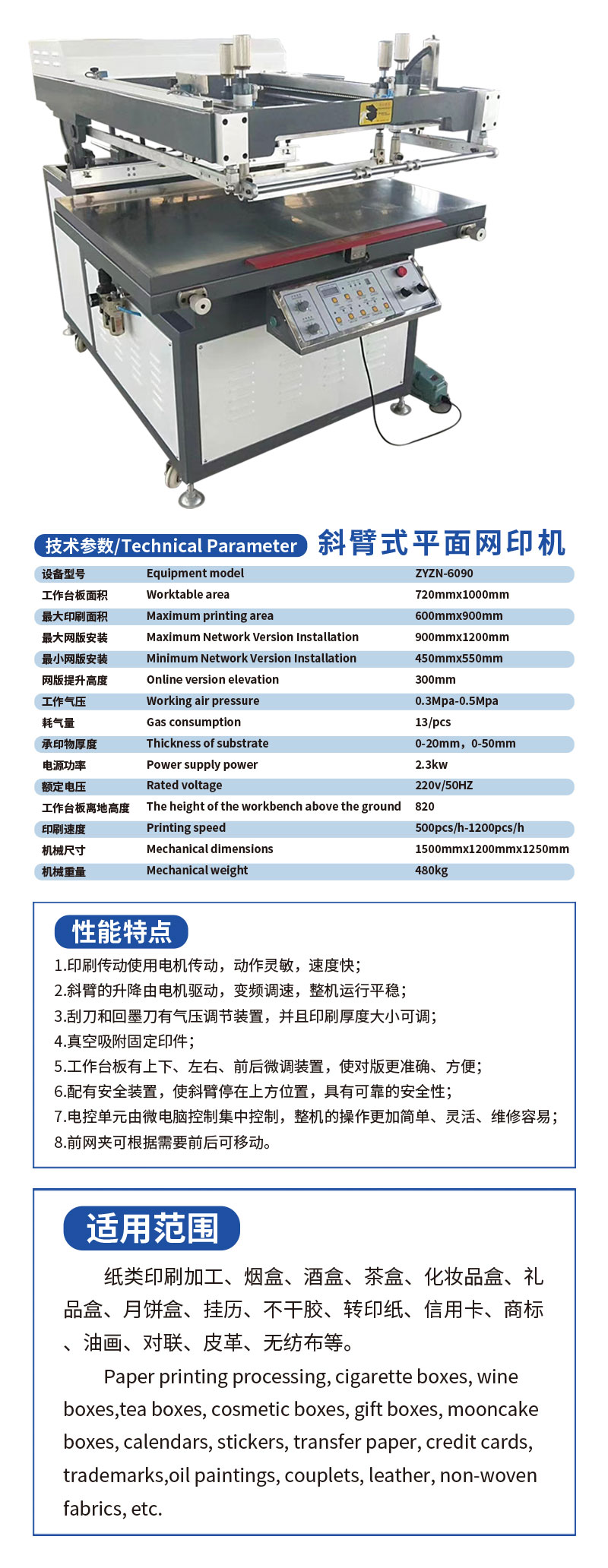 斜臂式平面网印机ZYZN-6090 上一篇« 斜臂式平面网印机ZYZN-7010 下一篇斜臂式平面网印机ZYZN-5070 » 您可能喜欢 垂直升降网印机ZYZN-6080 网版烘烤箱ZYZN-90120 UV紫外线多功能光固机ZYZN-1200 自动取料机械手ZYZN-1500 斜臂式平面网印机ZYZN-7010 自动收纸机 机械式拉网机ZYZN-16180 高精密晒版机ZYZN-12150 UV手摆离线半自动丝印冷烫机ZYZN-720